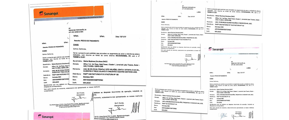 Os documentos mostram ainda que há oito faturas da Matter no valor de 19,65 milhões de dólares que foram remetidas pela Sonangol para o Eurobic em Lisboa a 16 de novembro de 2017, um dia depois de a filha de José Eduardo dos Santos ter sido exonerada. Essas faturas seguiram à hora de almoço numa versão em que tinham a data de 16 de novembro e depois voltaram a ser enviadas à tarde com a data de 14 de novembro — um dia antes da exoneração.