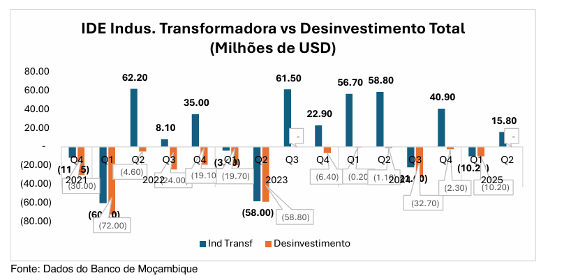 A queda do investimento tem sido acompanhada por desinvestimento, com destaque para a indústria transformadora que, nos últimos cinco anos, registou um desinvestimento estimado em 196,5 milhões de USD. Este desinvestimento significou a redução da capacidade da economia de adicionar valor e expandir o emprego.