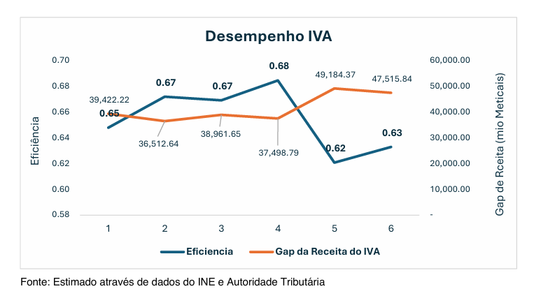 Análises demonstram que a diferença total entre o IVA potencial e o efectivo é estimado em média de 5,8% do PIB nos últimos cinco anos, dos quais cerca de 0,9 pp do PIB é gerado pela estrutura actual da política do IVA e 4,9pp do gap resulta das deficiências no cumprimento das obrigações fiscais. Neste contexto, nota-se que a melhoria da capacidade de cobrança e controlo da receita pode resultar em aumentos significativos da receita, abrindo espaço fiscal para lidar com os desafios actuais.