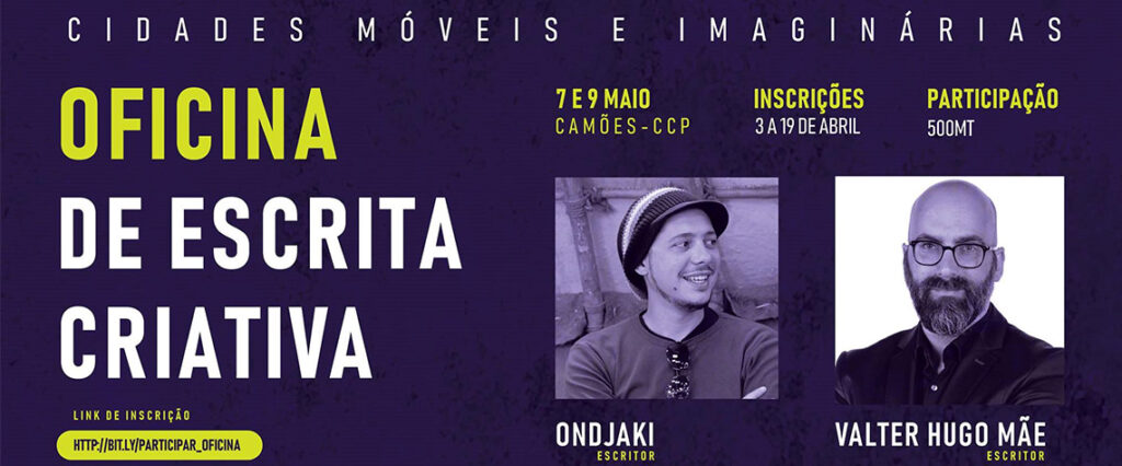 A Oficina de Escrita Criativa: Cidades Móveis e Imaginárias, realizar-se-ia durante a 3ª Edição do Festival Literário RESILIÊNCIA. Os participantes são desafiados a escrever um texto subordinado ao tema “Cidades Móveis e Imaginárias”, com o máximo de duas páginas. A oficina será orientada pelos escritores: Ondjaki e Válter Hugo Mãe.