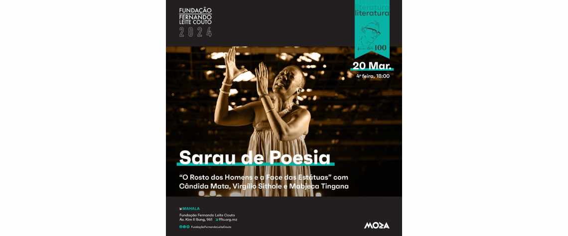 Para celebrar a poesia, a Fundação Fernando Leite Couto junta os artistas Cândida Mata, Virgílio Sithole e Mabjeca Tingana num sarau cultural onde as palavras são cantadas e ditas em português e xichangana. (20 de Março, às 18h00 na Fundação Fernando Leite Couto)
