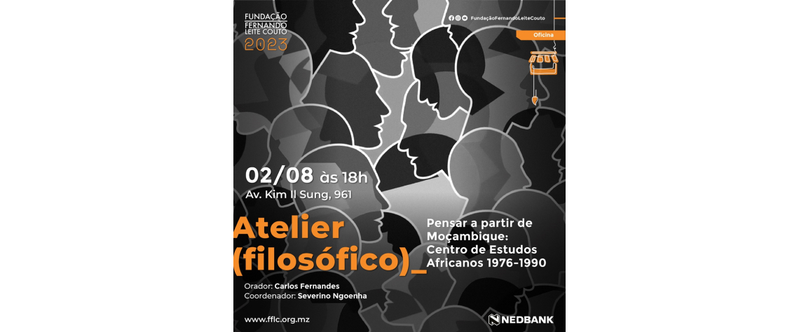 O Atelier Filosófico do mês de Agosto será na próxima quarta-feira, dia 2, e tem como tema “Pensar a partir de Moçambique: Centro de Estudos Africanos 1976-1990”. O orador será Dr. Carlos Fernandes. Coordenação: Severino Ngoenha. (02 de Agosto, às 18:00 horas na Fundação Fernando Leite Couto)
