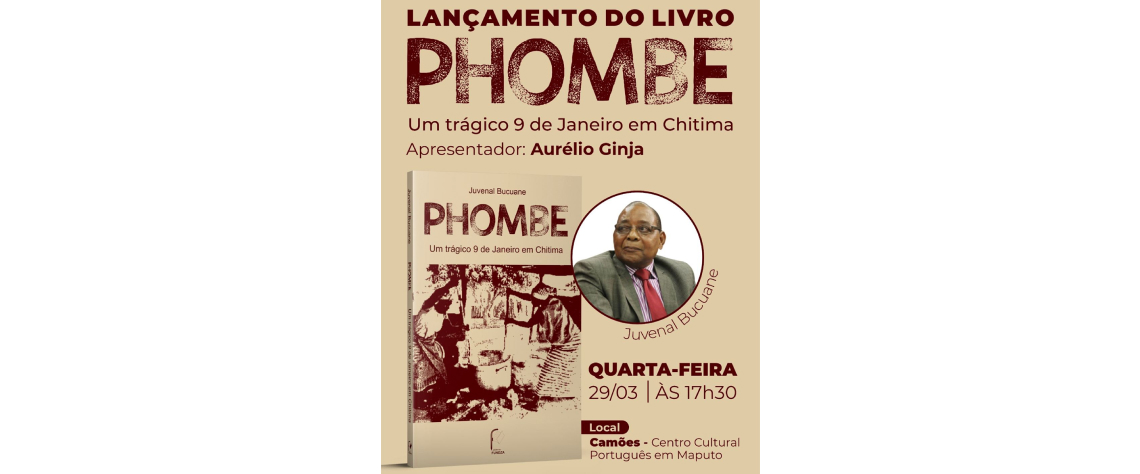 O escritor e poeta Juvenal Bucuane lança, no próximo dia 29 de Março, a partir das 17:30, no Camões – Centro Cultural Português em Maputo, o livro “Phombe – um trágico 9 de Janeiro em Chitima”. O livro tem a chancela da Editora Fundza e será apresentado por Aurélio Ginja. (29 de Março, às […]