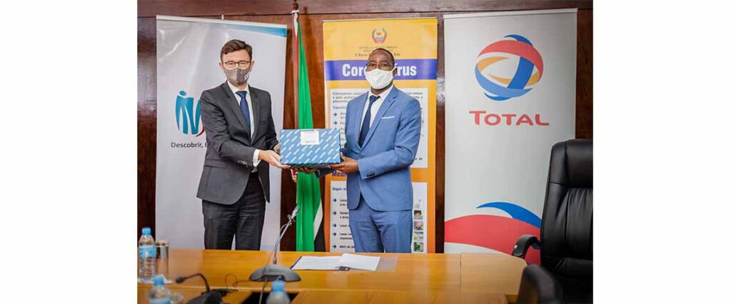 O Projecto Mozambique LNG, liderado pela Total, procedeu esta quarta-feira, no âmbito do seu apoio à resposta nacional contra a Covid-19, à entrega ao Ministério da Saúde (MISAU), de 12 mil kits de colheita de amostras, reagentes e consumíveis para seis mil testes de PCR e 24 kits de extracção equivalentes a seis mil amostras.