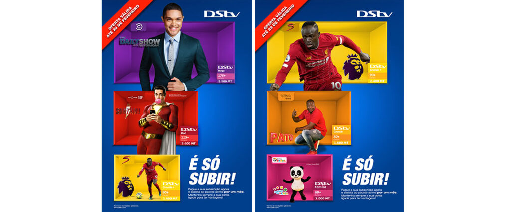 Os Clientes da DStv, líder no mercado na provisão de conteúdos de televisão digital, continuam a ser brindados com excelente proposta de conteúdos através da campanha É Só Subir lançada no dia 20 de Janeiro de 2020 e que termina no dia 29 de Fevereiro de 2020.