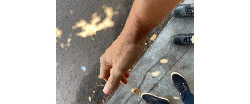 A viatura estava estacionada na margem oposta à referida residência, sem que houvesse qualquer sinal de proibição. Ao recusar, pela segunda vez, em colocar o carro no passeio, o agente reagiu com agressão física, dando ordem ao seu colega para ir buscar a arma e algemas que lhe foram colocadas, deixando marcas nos seus pulsos de tão apertadas que estavam.