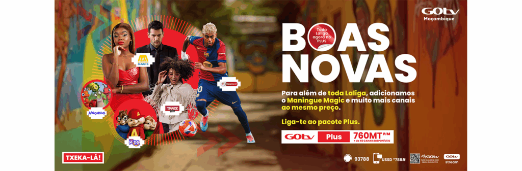 Maningue Magic, Moonbug em português, Panda Kids e Trace Toca são os novos canais que a partir de hoje, 1 de Agosto de 2025, passarão a compor a grelha dos canais do pacote GOtv Plus ao mesmo preço de 760Mt. Isso mesmo… Há mil e um motivos para continuar a txekar o melhor do entretenimento com a GOtv. A medida visa, mais do que nunca, agregar mais valor e conteúdos que as famílias moçambicanas gostam num pacote que atende às suas necessidades de entretenimento.