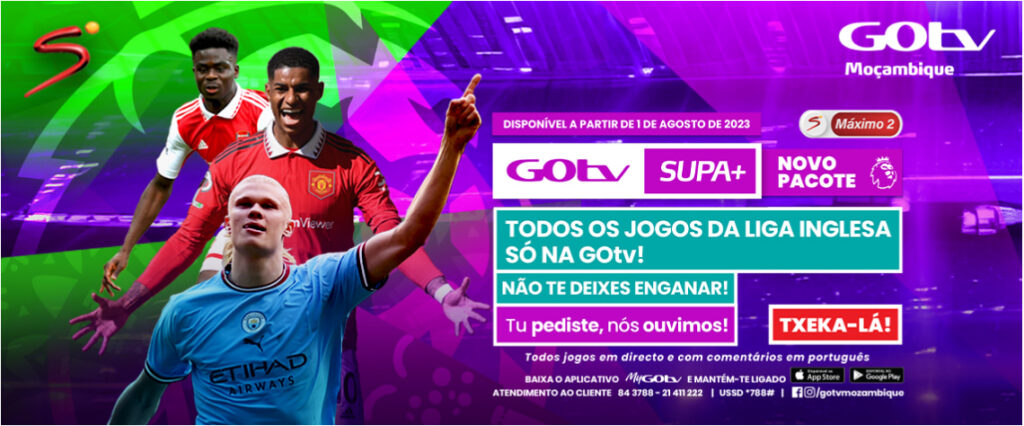 Com o objectivo de oferecer aos telespectadores os melhores conteúdos de desporto e entretenimento de qualidade, a GOtv Moçambique vai lançar o novo super-pacote: GOtv SUPA+. A partir de 1 de Agosto, na GOtv, será possível assistir todos os jogos em directo e em exclusivo da Liga Inglesa de Futebol e vários da Ligas dos Campeões Europeus, os quais se associam aos de outras ligas já disponíveis na GOtv, incluindo da La Liga e da Série A, no conforto da tua casa.