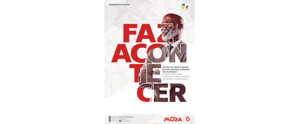 A nova campanha institucional do Moza está directamente associada à celebração dos 15 anos de um Banco que adoptou uma postura positiva e proactiva, orgulhando-se de ser uma entidade que tem na sua génese o reflexo de um espírito moçambicano que “não espera que as coisas aconteçam, sempre inventa uma nova maneira de fazer algo, que sempre supera qualquer obstáculo que lhe apareça à frente, que sempre encara com optimismo todas as adversidades e “Faz acontecer”.