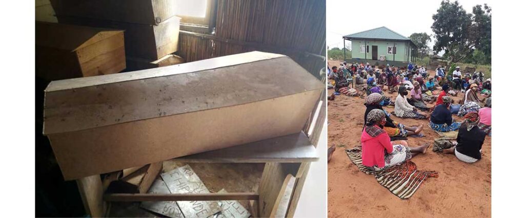 Segundo a fonte da ONG moçambicana, a amputação foi feita na presença das famílias, mas por pessoas não especializadas, que terão usado catanas, serrotes e outros instrumentos para mutilar braços e pernas dos cadáveres, de forma a que pudessem caber nos novos caixões.