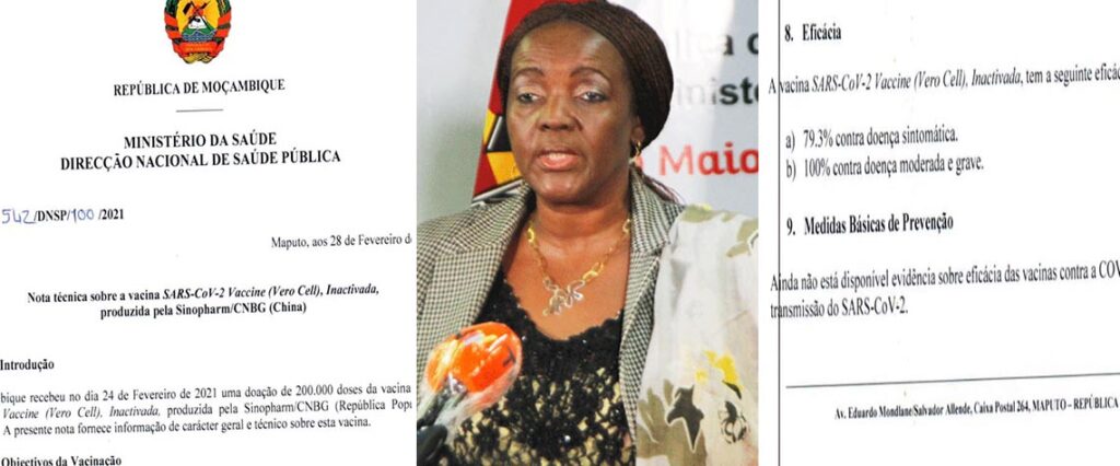 No calor do debate público em torno da eficácia da vacina Chinesa, o Ministério da Saúde (MISAU) viu-se obrigado a vir a público apresentar a sua ficha técnica. Moçambique recebeu, sabe-se, no passado dia 24 de Fevereiro, 200 mil doses da vacina da Sinopharm doadas pelo Governo da República Popular da China.