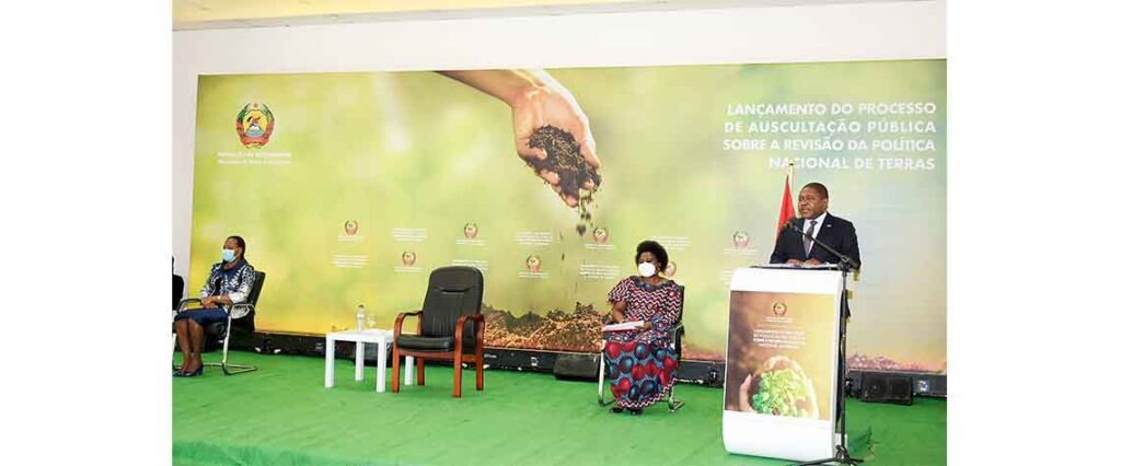 Para Filipe Nyusi, a nova Política de Terra deve preencher as actuais lacunas relacionadas à ligação entre o uso e aproveitamento de terra e o acesso aos recursos naturais e a sua exploração sustentável. “Queremos conviver com um quadro legal e operacional que estanque o açambarcamento de terras, a especulação e corrupção, que reduza o risco de conflitos, que combata a existência de terras ociosas e que reforce, em particular, a protecção dos direitos das comunidades locais, em especial da mulher nas zonas rurais e dos jovens”, disse a fonte, avançando, aliás, a necessidade de se clarificar o conceito de comunidade local e seu reforço como importante mecanismo para a garantia efectiva da posse de terra pelos cidadãos e famílias rurais e de zonas peri-urbanas.