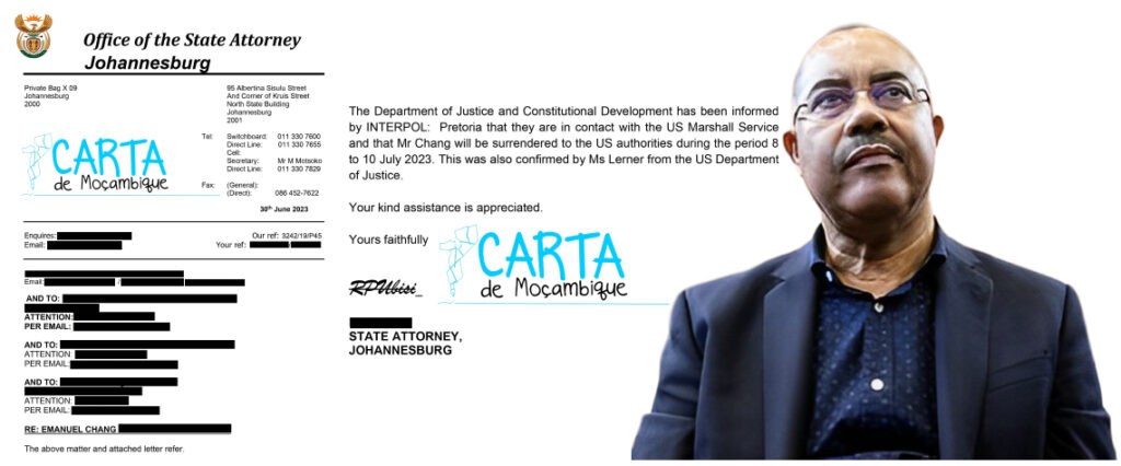 O Departamento foi informado pela INTERPOL-Pretória que estão em contato com o US Marshall Service e que o Sr. Chang será entregue às autoridades dos EUA durante o período de 8 a 10 de julho de 2023. Isso também foi confirmado pela Sra. Lerner do Departamento de Justiça dos Estados Unidos”. Sic