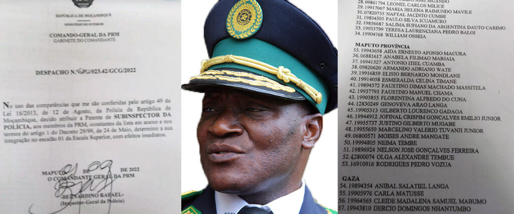 De acordo com as fontes, o novo despacho foi emitido na quinta-feira após uma onda de indignação manifestada no seio da corporação pela promoção de Fernando Bernardino Rafael, do ramo da Polícia Costeira, Lacustre e Fluvial, àquela patente, em apenas três anos de serviço.