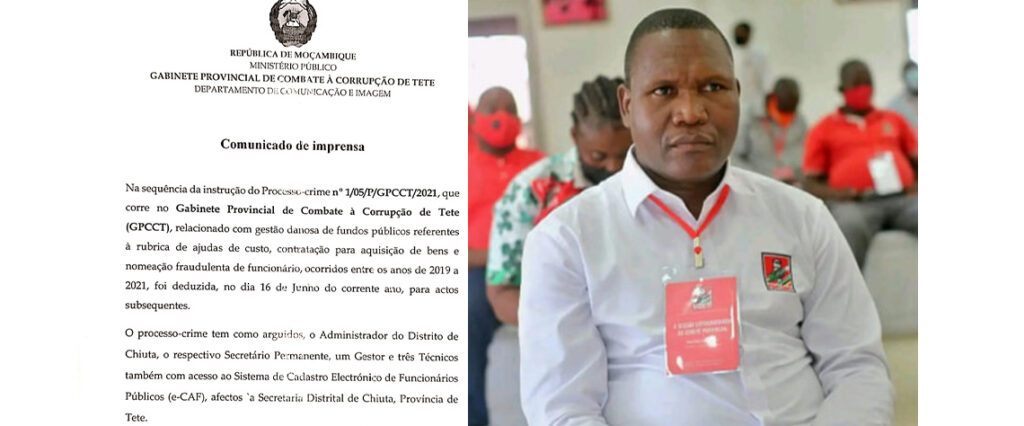Porém, o distrito de Chiúta está sem Administrador desde que Gonçalves Jemusse foi eleito Primeiro-Secretário da Frelimo em Tete, em Novembro de 2021, em substituição de Fernando de Sousa, que fora nomeado Vice-Ministro de Terra e Ambiente. Isto é, o comunicado indica um arguido inexistente, neste momento, na estrutura administrativa do distrito de Chiúta.