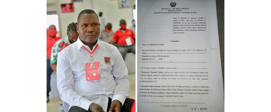 Gonçalves João Jemusse, actual Primeiro Secretário Provincial da Frelimo em Tete, é acusado de ter liderado um esquema de desvio de perto de 1 milhão de Meticais do erário público, quando exercia as funções de Administrador do distrito de Chiúta, na província de Tete. A acusação é feita pelo Ministério Público, no âmbito do Processo nº. 1/05/P/GPCCT/2021, instruído pelo Gabinete Provincial de Combate à Corrupção de Tete (GPCCT).