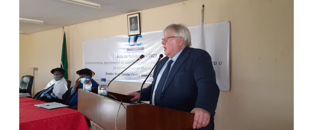 Na ocasião, o reitor da Universidade, José Magode, explicou que o acasalamento da diplomacia e economia extractiva justifica-se pelo facto de grande parte dos actores intervenientes na indústria extractiva (ou investidores) em Moçambique serem externos, facto que leva ao subcampo de relações económicas internacionais. (Evaristo Chilingue)