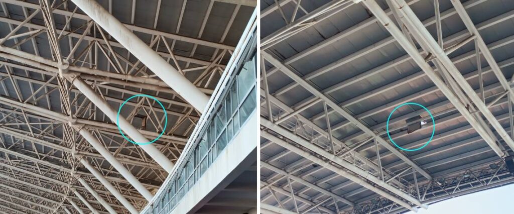 O alerta deve-se ao facto de parte da cobertura do maior e mais moderno empreendimento desportivo do país estar danificada, apresentando algumas chapas soltas da estrutura de suporte, facto que pode colocar em risco milhares de vidas humanas.