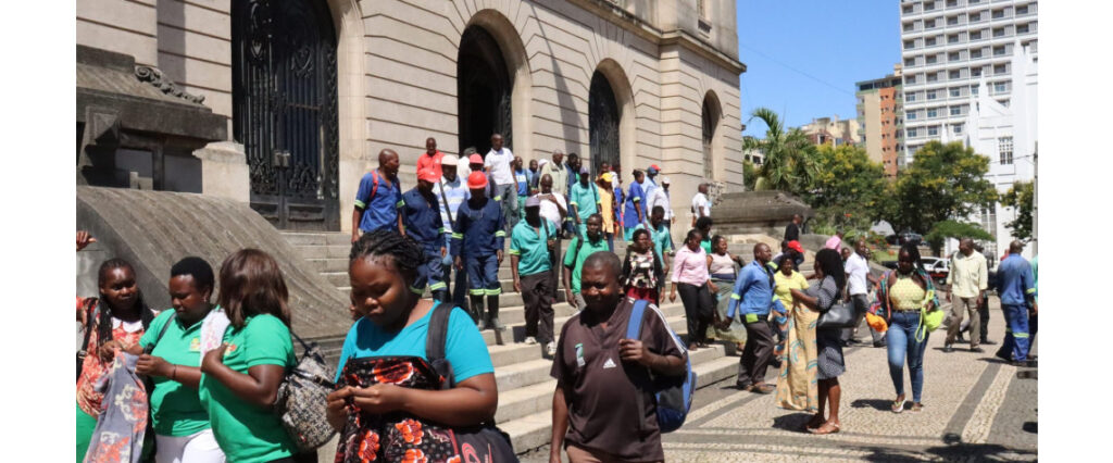 Funcionários de diversos sectores do Conselho Municipal da cidade de Maputo concentraram-se em frente ao edifício sede para reivindicar o pagamento de salários com base na Tabela Salarial Única (TSU).