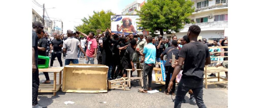 Jovens trajados com roupa preta saíram à rua esta quinta-feira (21), quando eram pontualmente 12h00, na Avenida das FPLM, concretamente na estação de Angoche, com dísticos retratando os problemas que apoquentam a sociedade moçambicana, nomeadamente, os resultados anunciados pela CNE e o elevado custo de vida, entre outros.