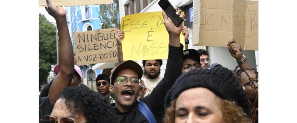 Entre os jovens estava Sílvia Henriques, de 26 anos, que trocou Moçambique por Portugal há cerca de dois anos. Antes de começar a falar, secou as lágrimas pela situação no país, confortada com o abraço de outro dos manifestantes.