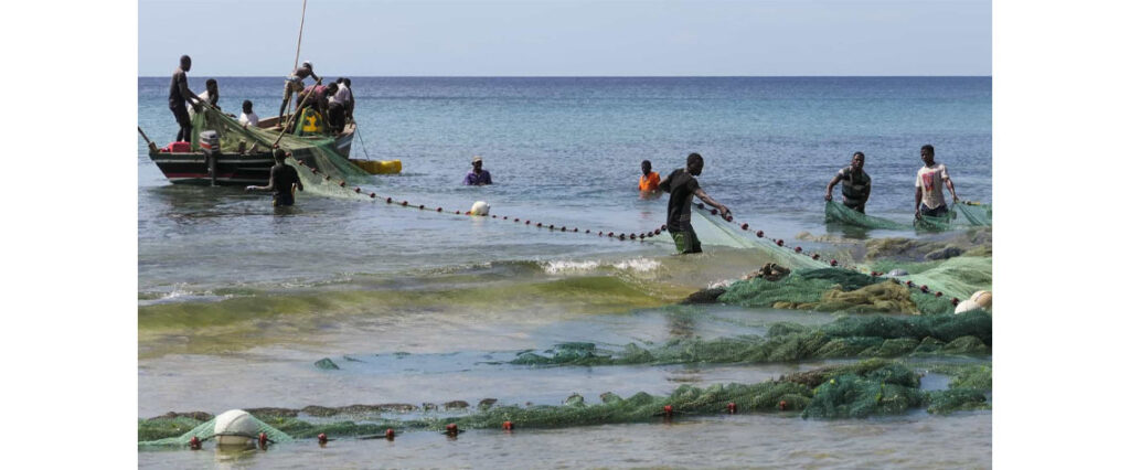 Jovens, com blusas gastas pelo sol e pela água salgada, juntam-se no areal de Pemba, capital provincial, para puxarem as redes do mar, um dos passos da atividade artesanal. “As coisas mudaram e a gente só faz, no máximo, três mil meticais [44 euros]” em pescado, e a dividir pelo grupo, que cedo se faz à faina, com redes artesanais, a partir de Pemba.